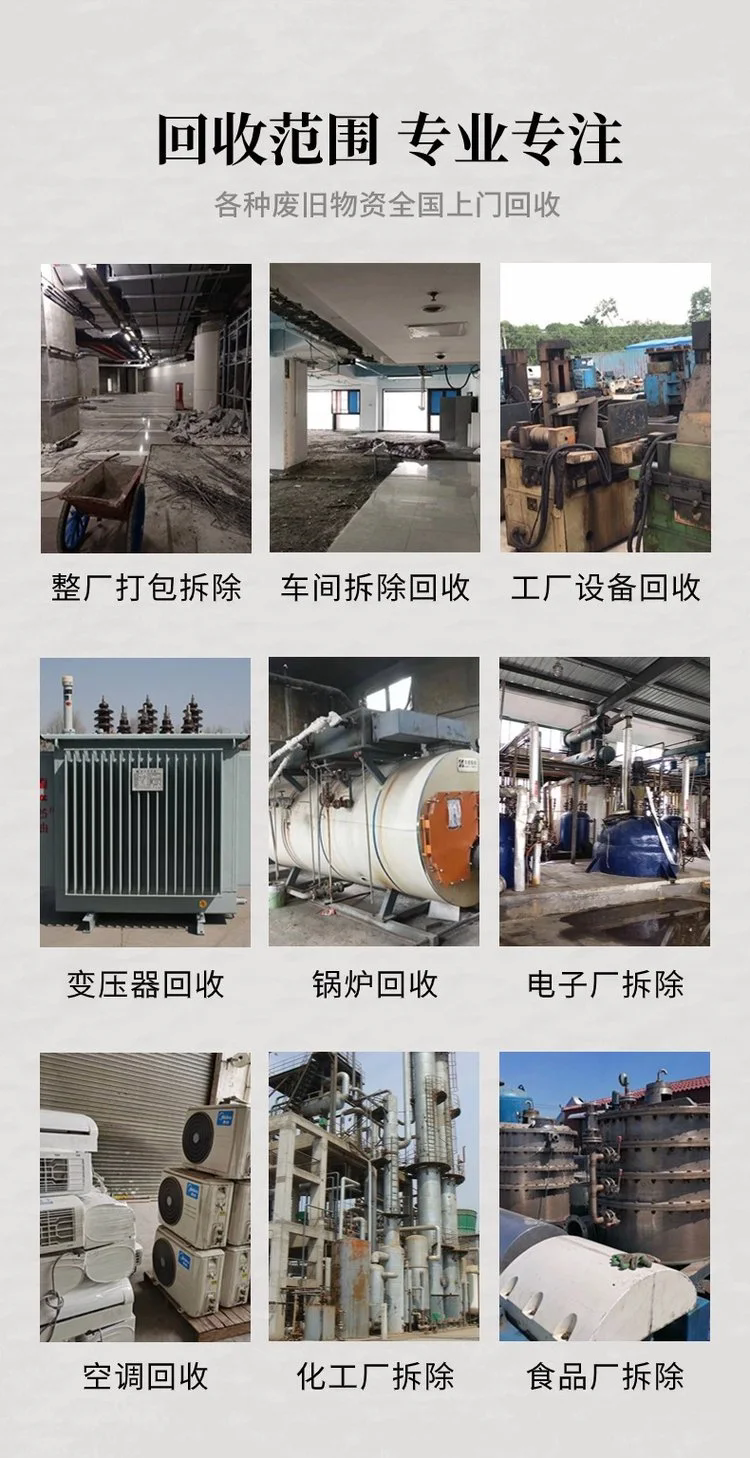 廢舊工廠拆除回收,整廠設(shè)備回收,專業(yè)拆除估價(jià),高價(jià)回收低利潤(rùn)。承接倒閉工廠拆除,回收各類廠房設(shè)備,包括化工廠、水泥廠等。歡迎來(lái)電咨詢。