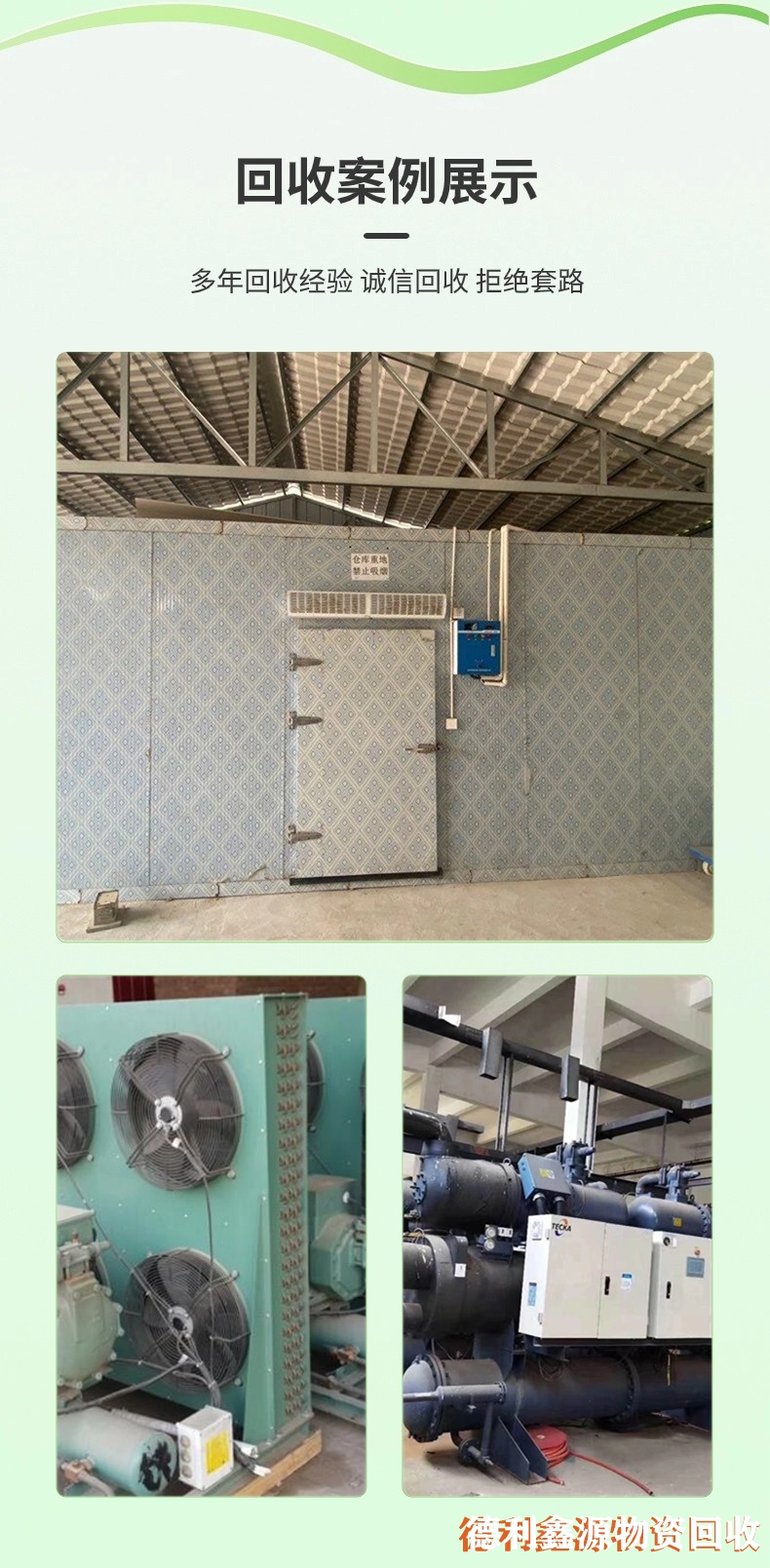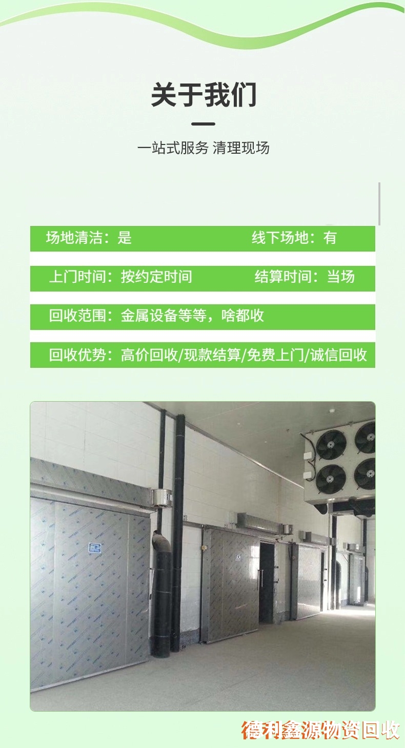 長期高價回收二手冷庫及中央空調制冷設備,主營冷庫設備安裝設計,資金充足,快速上門。提供回收、拆除、銷售、安裝等一站式服務,以質論價,互利共贏。